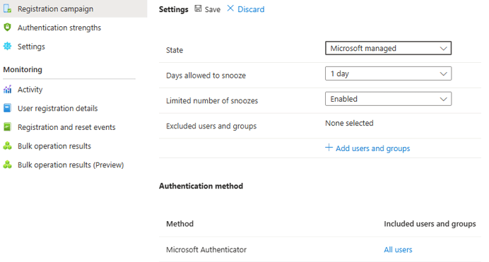 Many organizations still do not apply multifactor authentication or rely on less secure methods like SMS and email-based verification. Registration campaigns help transition users to stronger authentication methods in a more structured way while maintaining a manageable user experience.