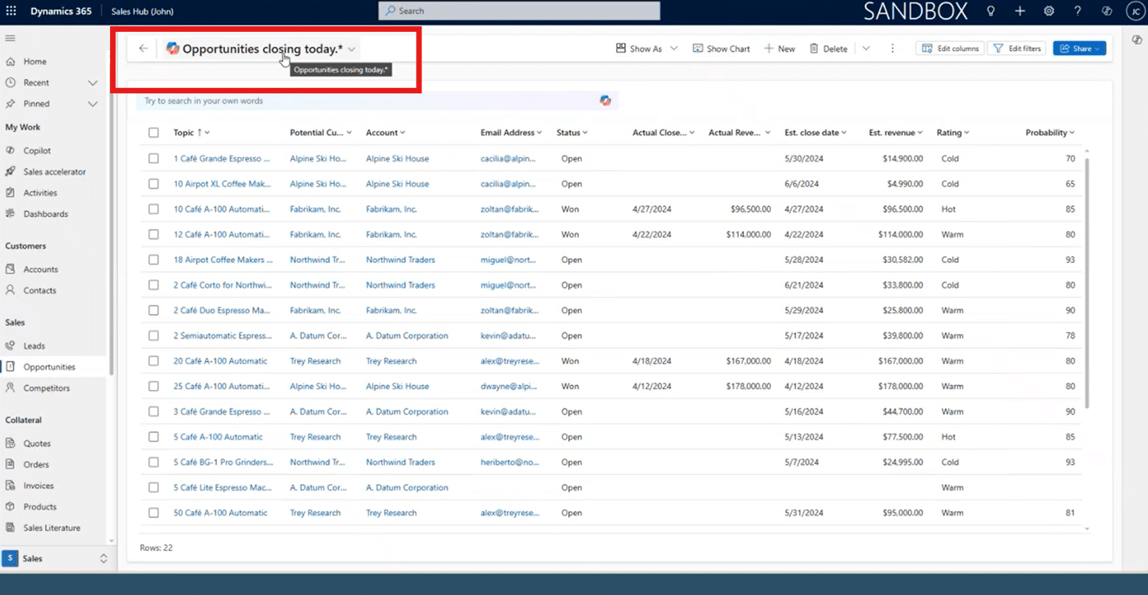 Copilot correctly chooses the dynamic version, ensuring the view remains useful in the future. So if that same sales rep decides to do the same thing a week later, Copilot will pick up on the fact that they want to see opportunities closing on the day they type the prompts.