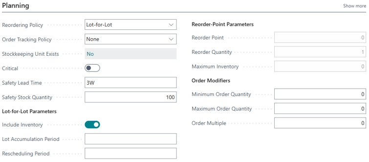 The Planning Fastab on an item card is where you will find the parameters that drive your process. Remember, you are just getting started.