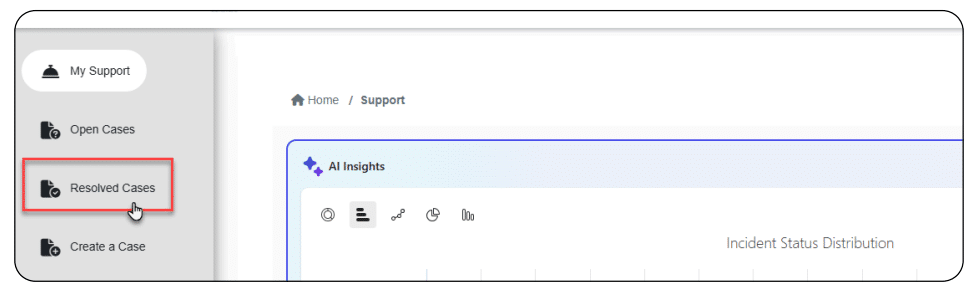 • Navigate back to the "My Support" menu and click "Resolved Cases"