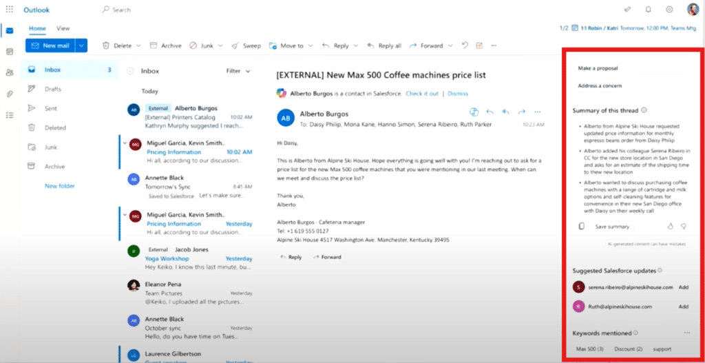 - Seamless CRM Integration: Whether using Microsoft Dynamics 365 or Salesforce, Copilot enables direct updates to CRM records from within Teams and Outlook, reducing friction in sales workflows.