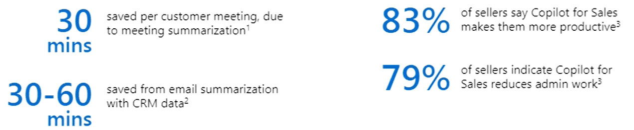 In another Microsoft study, 83 percent of sellers said Copilot for Sales made them more productive. Additionally, 79 percent said it reduces admin work.