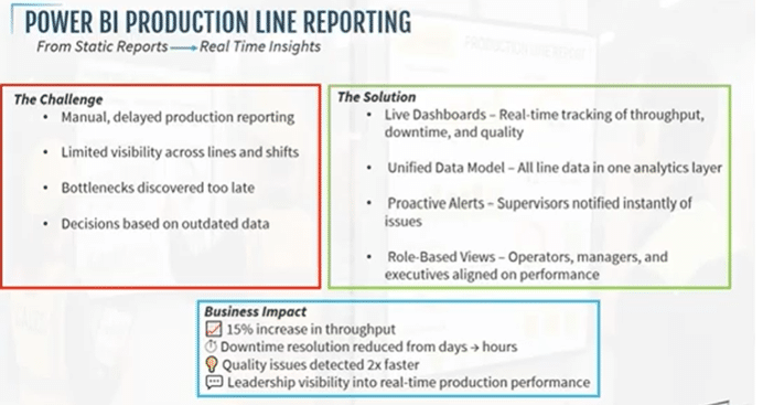 One of the most immediate transformations came from implementing Power BI as the manufacturer’s production intelligence hub.