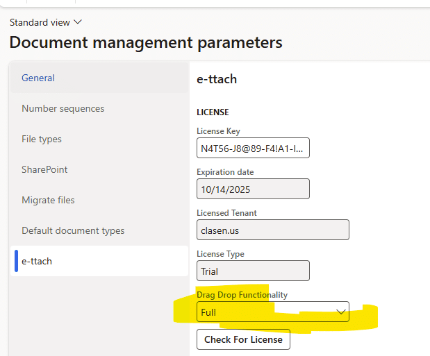 Navigate directly to DocuParameters (?cmp=USMF&mi=DocuParameters) and disable e-ttach Drag and Drop functionality. You should see an immediate effect after you reload the page.