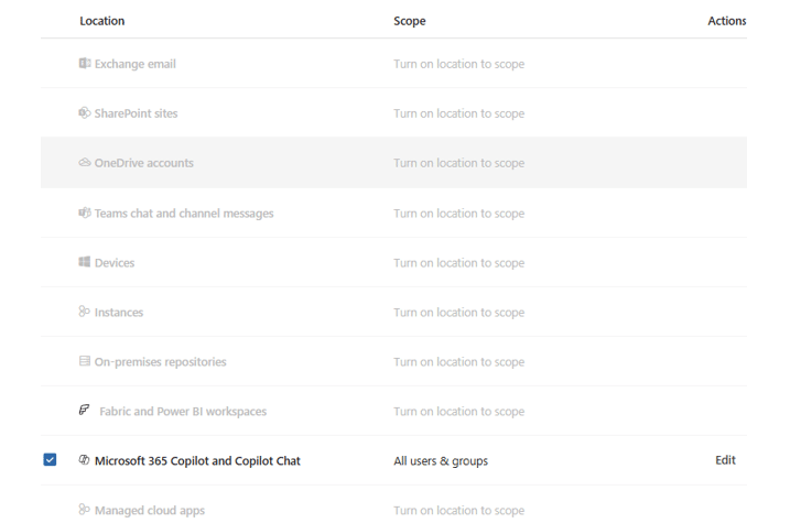 - Under Locations select ‘Microsoft 365 Copilot and Copilot Chat’.